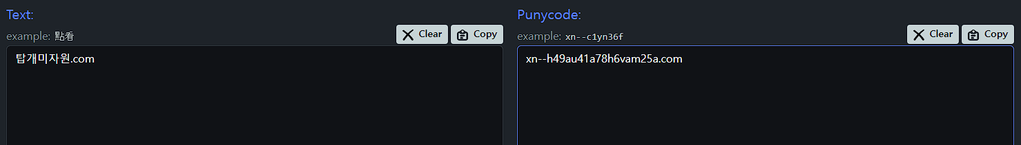 - 이를 해결하기 위해선 우선 한글 도메인을 퓨니코드로 변환을 해야합니다.