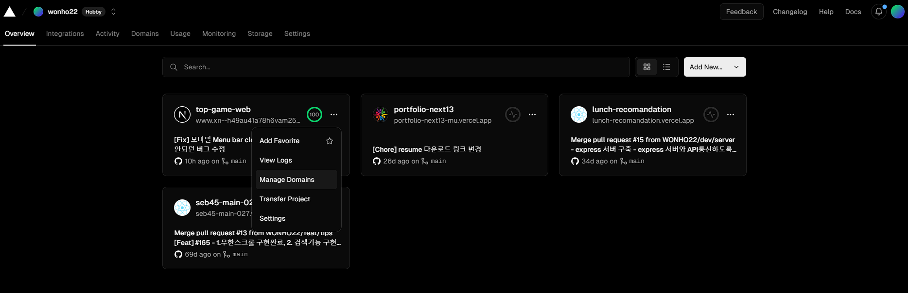 - 혹시 모르시는 분들을 위해, vercel을 통해 도메인을 추가하는 과정은 아래의 사진을 참조해주세요.